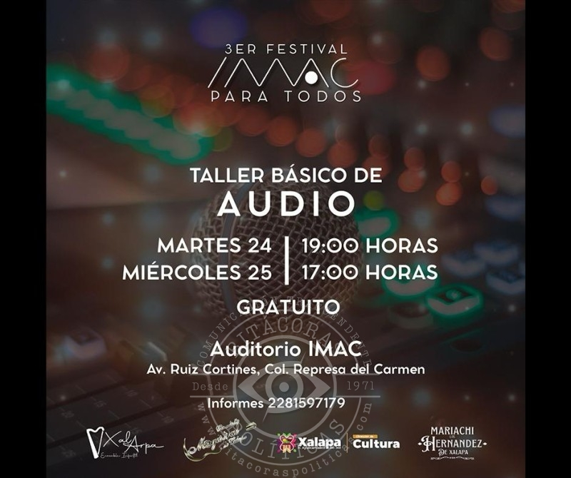 El martes a las 10:00 horas, en el CRX se inaugurará la exposición “Libro artesanal veracruzano de telesecundaria”. A las 19:00 horas continuará el Festival “IMAC para todos”, con el Taller básico de audio, actividad que se repetirá el miércoles a las 17:00 horas.