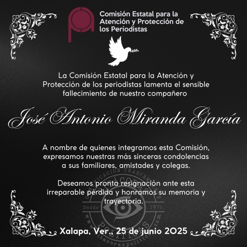 A través de un comunicado oficial, la CEAPP lamentó el fallecimiento de su colaborador y expresó sus condolencias a familiares, amistades y colegas. “Reconocemos su trayectoria y compromiso con los derechos humanos y la labor periodística en Veracruz”, indicó el organismo.