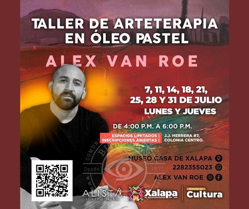 Este lunes, a las 16:00 horas, en el Museo Casa de Xalapa (Muxa), se desarrollará el Taller de arteterapia en óleo pastel, impartido por Alex Van Roe. A las 18:00 horas, en el Teatro J. J. Herrera, se develará una placa en honor de Gladys Villegas Morales, Medalla al Mérito Artístico Juan Herrera Vázquez “Juanote”.