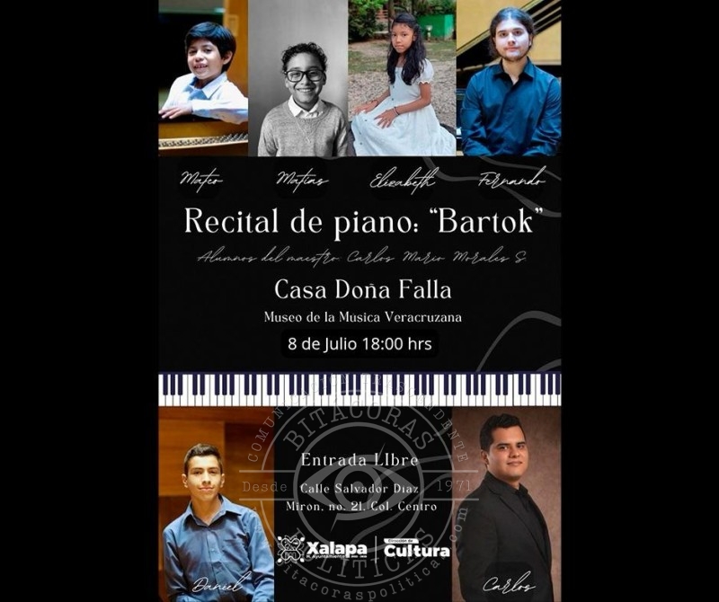 El martes, a las 18:00 horas, en el Museo de la Música Veracruzana, se llevará a cabo el Recital de Piano “Bartok”. En paralelo, en el Teatro J. J. Herrera, se proyectará la película “Hombre mirando al sudeste”, como parte del programa Movie-Martes.