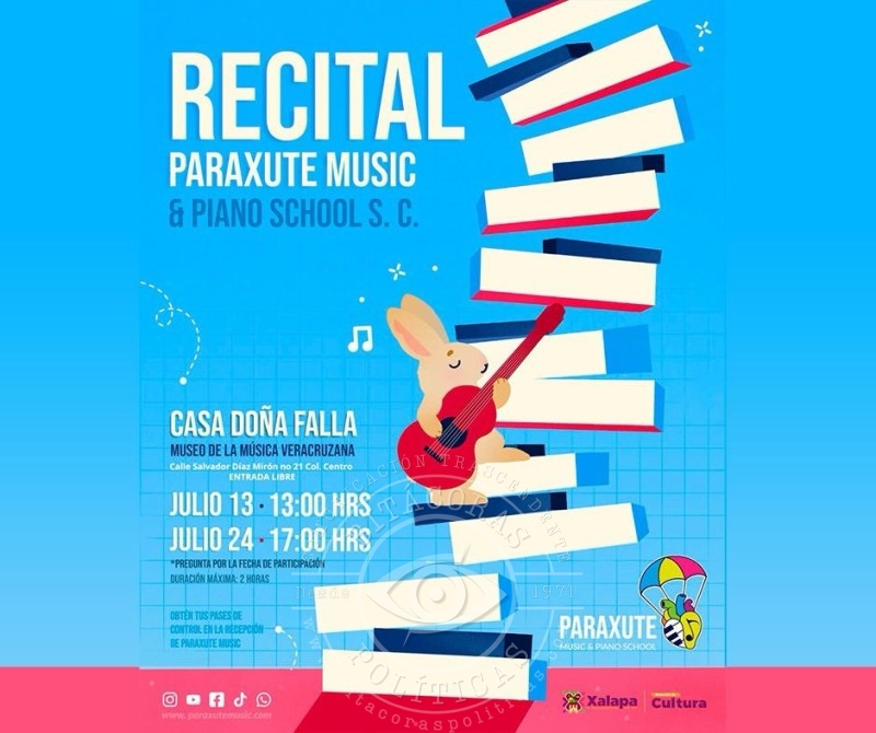 En el mismo recinto, se realizará el Recital de Verano con alumnos de Mumo: Estudio de Piano y Violín. A las 18:40 horas, en el Barrio Mágico de Xallitic, se llevará a cabo el fandango “Un legado veracruzano”.