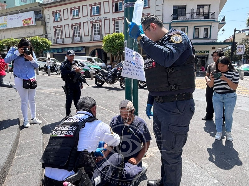 A 39 días de iniciar una huelga de hambre y por segundo día consecutivo encadenado a un poste del alumbrado público frente a Palacio de Gobierno, Juan Ricardo Ordóñez Jerez sufrió un desvanecimiento debido a un cuadro severo de deshidratación. La situación obligó a la intervención de paramédicos de la Secretaría de Seguridad Pública (SSP), quienes lo rehidrataron vía intravenosa en el sitio.