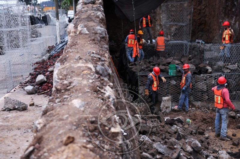 De acuerdo con la autoridad municipal, las labores se realizan conforme al cronograma establecido e incluyen la colocación de estructuras de gaviones, un muro mecánicamente estabilizado y drenes para controlar la infiltración de escurrimientos pluviales.