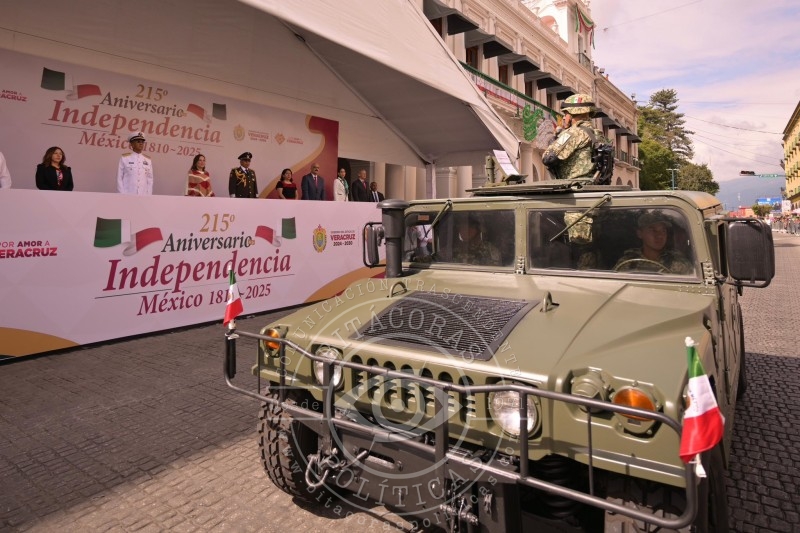 La gobernadora de Veracruz, Rocío Nahle García, encabezó este martes su primer Desfile Cívico-Militar en la capital del estado, con la participación de 2 mil 157 personas entre autoridades civiles, fuerzas armadas y organizaciones sociales, para conmemorar el 215 aniversario del inicio de la Independencia de México.