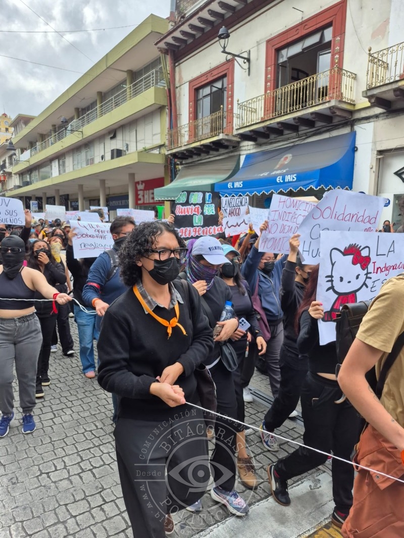 El contingente partió alrededor de las 10:00 horas desde el Teatro del Estado y avanzó por la avenida Ávila Camacho hasta llegar a la Rectoría de la UV, donde los manifestantes realizaron un pronunciamiento público. Portaban pancartas con consignas de solidaridad y demandas de verdad. Durante la concentración, también expresaron su rechazo a la prórroga del rector Martín Aguilar Sánchez, a quien calificaron de “espurio”, y exigieron que la institución emita un comunicado oficial con cifras verificadas sobre las personas desaparecidas.