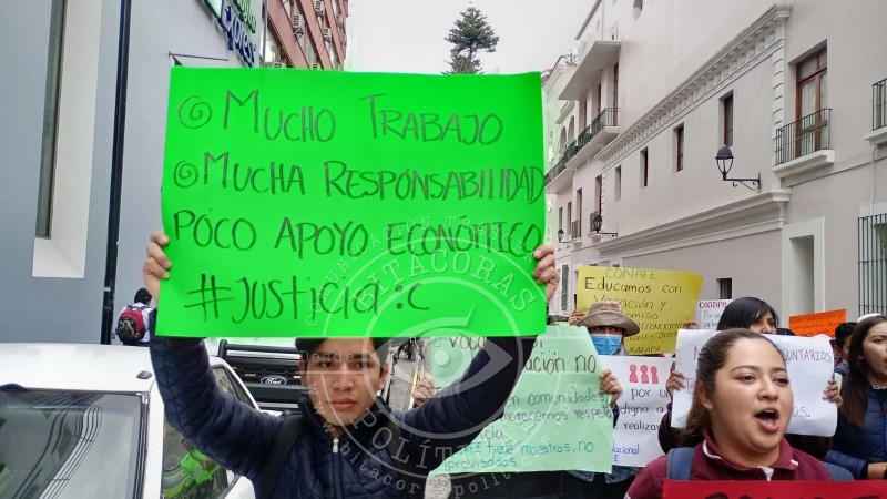 De acuerdo con el educador comunitario Ángel Daniel Cuevas Flores, los inconformes reclaman el pago de un bono navideño equivalente a un aguinaldo, anunciado a nivel nacional desde diciembre pasado, pero que no se cumplió debido a recortes presupuestales. Precisó que en el último año únicamente recibieron 980 pesos por este concepto, cuando en ejercicios anteriores el apoyo alcanzó hasta seis mil pesos.
