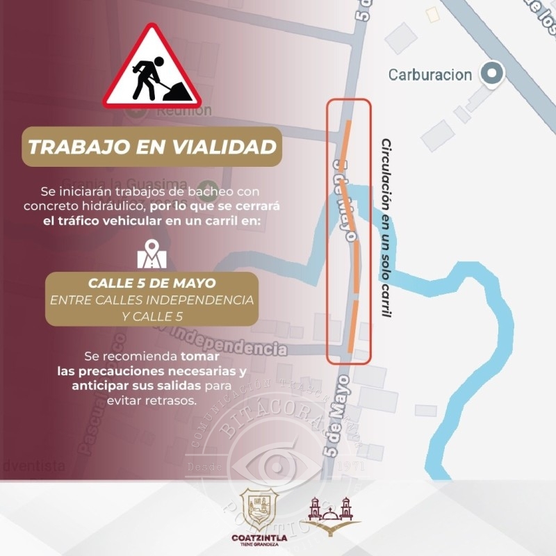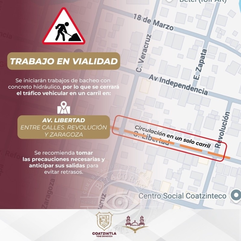 El Ayuntamiento de Coatzintla indicó que se mantendrá una comunicación constante con la población y que semanalmente se dará a conocer información sobre las próximas acciones de obra pública, con el propósito de facilitar la planeación de traslados y minimizar afectaciones.