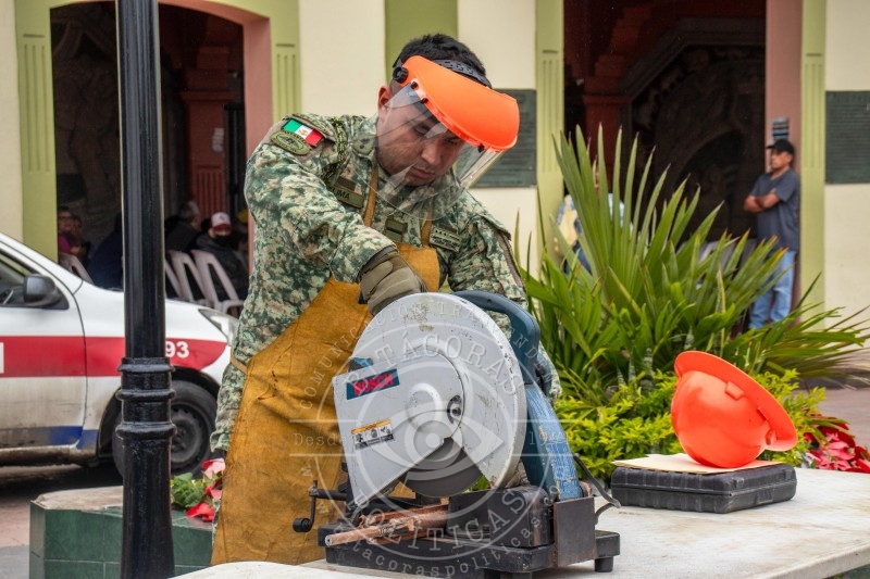 En representación del alcalde Jorge Alanís, acudió la síndica Sandra Luz Rodríguez, acompañada por la regidora primera Janet Rudecino Pérez, la regidora segunda Guadalupe Dolores Compañ y el regidor tercero Cliserio Santes Santiago. También participó la directora de Prevención del Delito y Seguridad Pública Municipal, Beatriz Salas del Ángel, junto con el capitán Virgilio García, del Séptimo Batallón de Infantería, y el director del COBAEV 32, Yarid Chrisfielth Lugo.