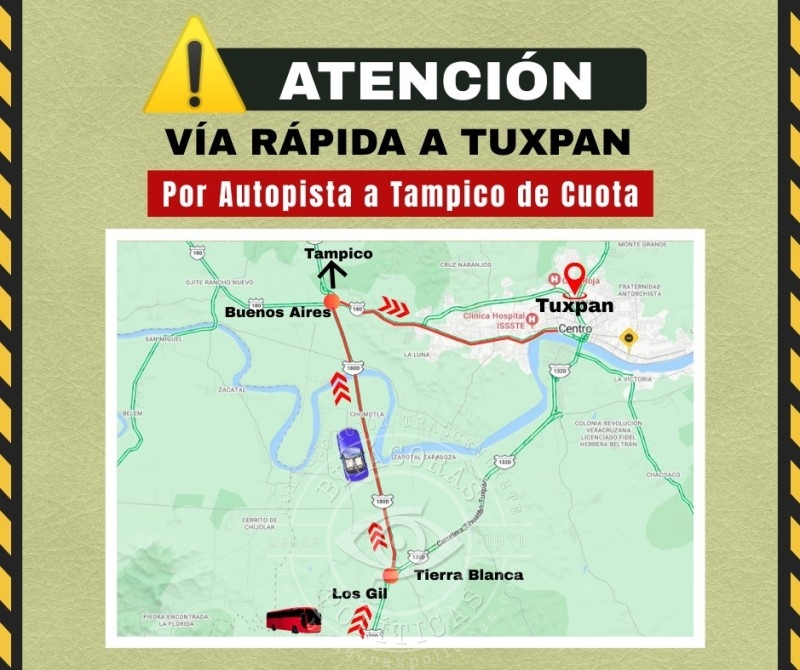 Autoridades recomiendan la vía alterna Los Gil-Buenos Aires (11 km) durante horas pico para agilizar el tránsito en el Puente Tuxpan