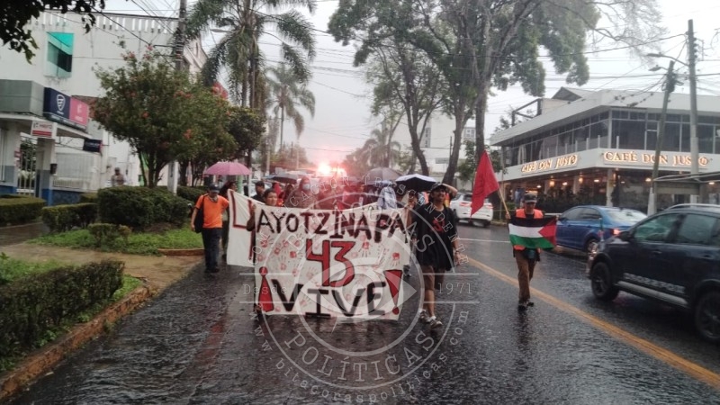 Con una caminata pacífica bajo la lluvia, universitarios exigieron verdad y justicia a once años de la desaparición forzada en Guerrero.