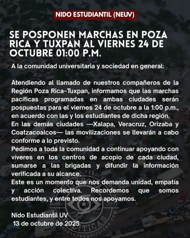 La Universidad Veracruzana suspende clases en los campus Poza Rica y Tuxpan mientras se organizan apoyos para reparar daños y atender a los afectados.