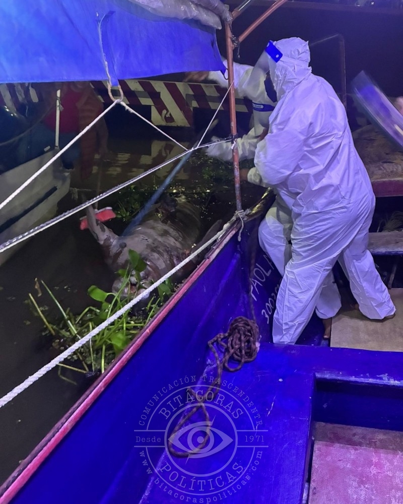 Protección Civil y Bomberos, en coordinación con lancheros y bajo autorización de la Profepa, aplicaron el protocolo federal para la disposición final del ejemplar hallado en Villa Allende.