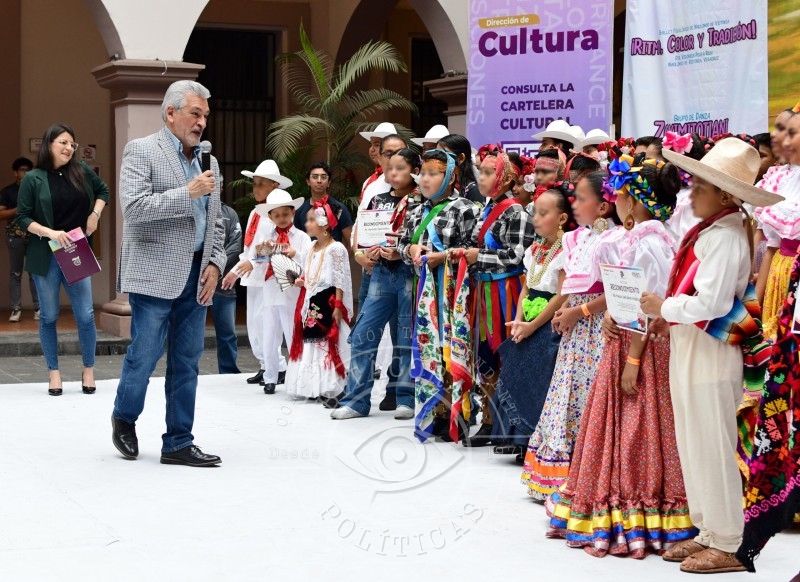 Acompañado por la directora de Cultura, Jessica Pérez Martínez, el Alcalde entregó reconocimientos a los grupos que participan en el festival, provenientes de los estados de Chiapas, Jalisco, Puebla y Veracruz.