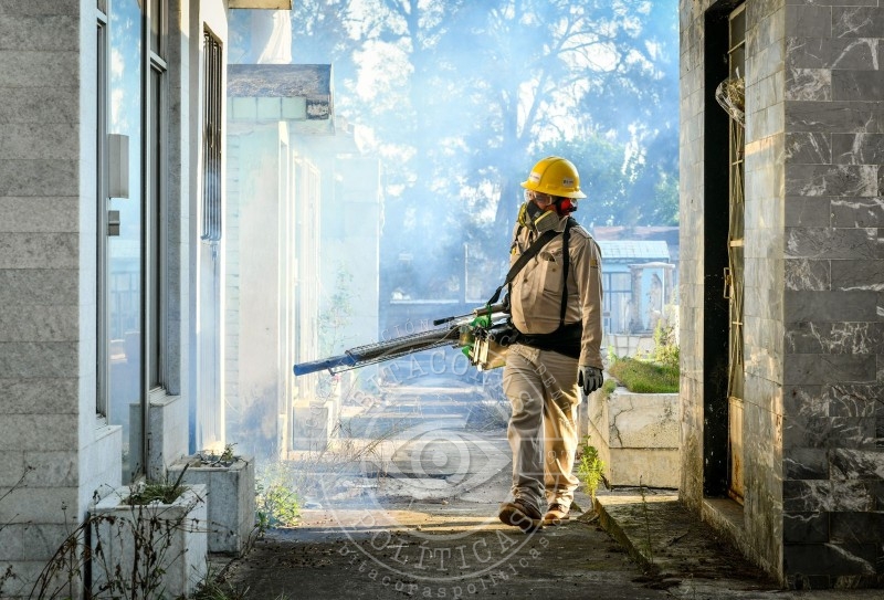 Con el fin de prevenir enfermedades transmitidas por vector como el Dengue, personal del Ayuntamiento, en coordinación con los Servicios de Salud de Veracruz y la Jurisdicción Sanitaria V, realizan acciones de nebulización, aplicación de larvicidas y limpieza general en los panteones municipales.