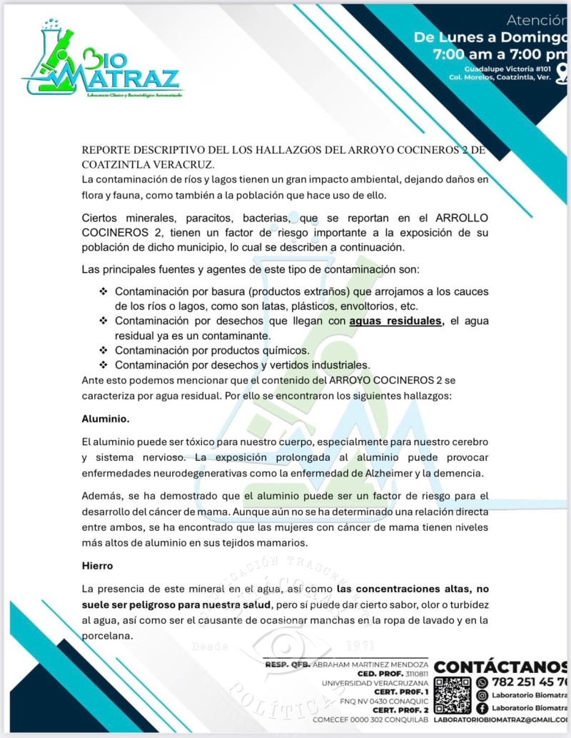 Jorge Alanís, candidato de Morena a la presidencia municipal de Coatzintla, es señalado como responsable directo de una crisis ambiental y sanitaria de largo alcance. De acuerdo con un estudio del laboratorio Bio Matraz, una granja porcícola perteneciente al consorcio Alaro —de su propiedad— ha contaminado durante más de cinco años el Arroyo Cocineros con desechos fecales e industriales, afectando la salud de decenas de familias.