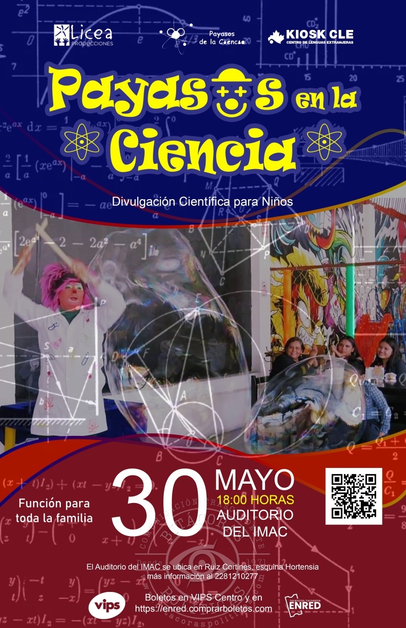 La agrupación Payasos de la Ciencia A.C., originaria de Oaxaca y con más de una década dedicada a la divulgación científica infantil, se presentará por primera vez en Xalapa el próximo 30 de mayo, con una función familiar en el Auditorio del IMAC, además de espectáculos escolares y un taller para docentes. Su objetivo: despertar el interés científico en niñas y niños mediante el juego, el humor y la experimentación.