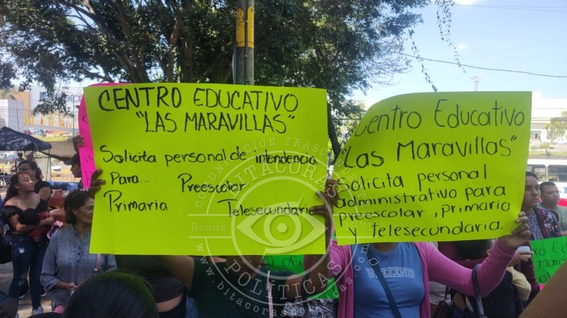 La directora y coordinadora del centro escolar Las Maravillas, Claudia Reyes Contreras, expreso que se están manifestando para exigir tres recursos administrativos, tres intendentes y el aumento del 100% a los docentes.