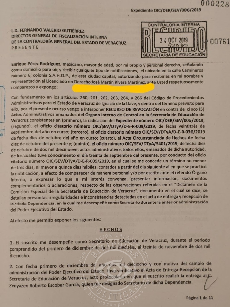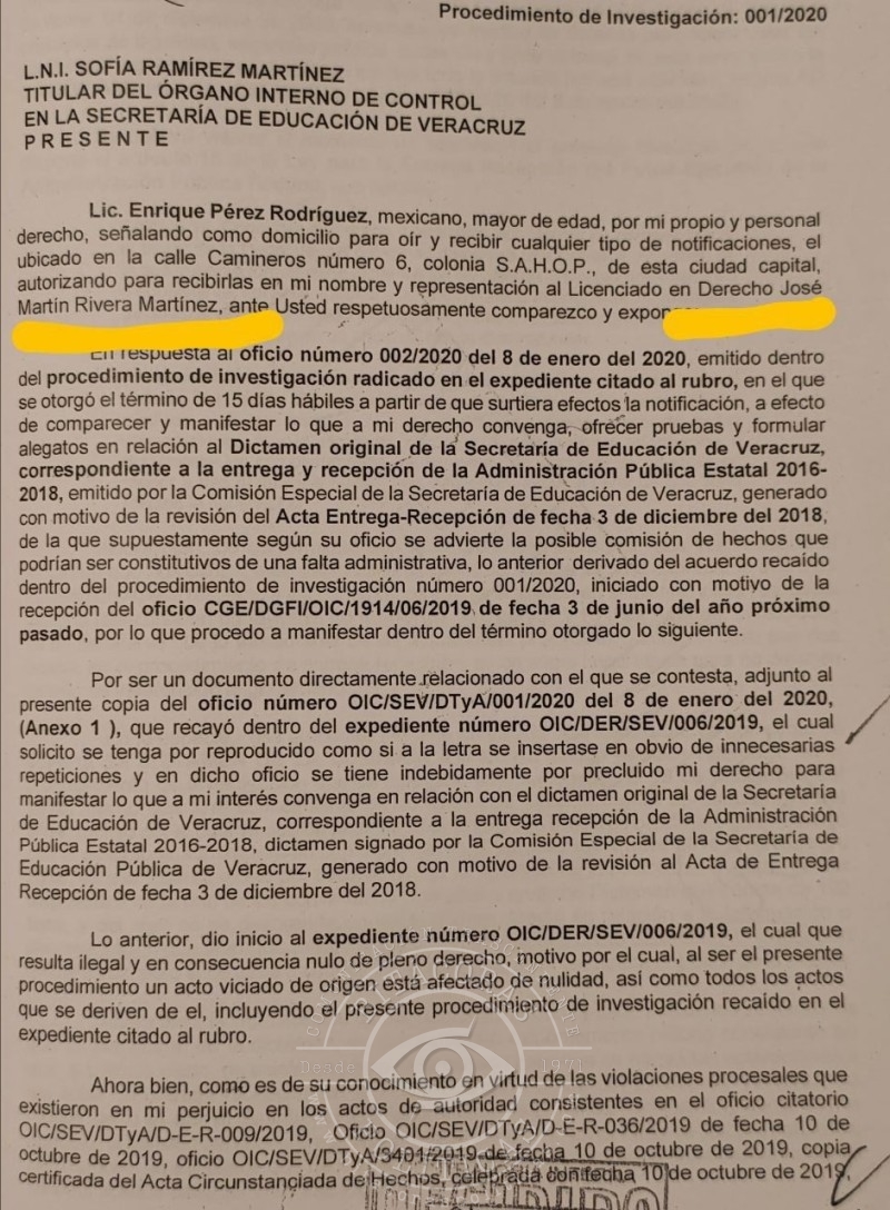 Resulta incomprensible cómo alguien con semejante historial de corrupción, desvío de recursos y tráfico de influencias continúe ostentando un cargo de alto nivel en la Secretaría de Educación de Veracruz, por lo que se está pidiendo la intervención de la gobernadora Rocío Nahle, a realizar las investigaciones pertinentes y deslindar responsabilidades de los presuntos infractores de la ley.