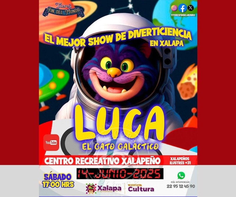 En el auditorio de la IMAC, a las 13:00 horas, se realizará el concurso de físiconstructivismo “Copa Xallapan”. A las 17:00 horas, en el Museo de la Música Veracruzana se tendrá el concierto “Música de Cámara”, por la Academia Suzuki Stars; en el CRX se desarrollará el show “Luca, el Gato galáctico”, que presenta la compañía Títeres, fin del mundo.