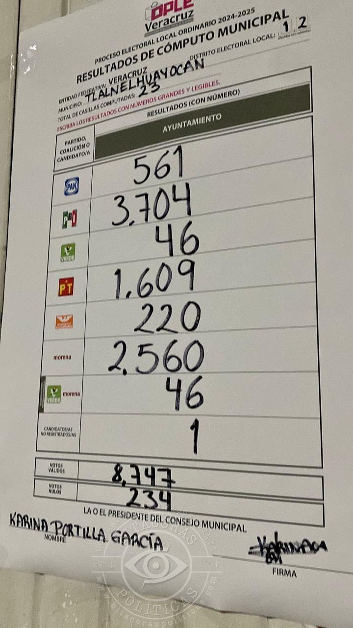 El presidente del Comité Directivo Estatal del PRI en Veracruz, Adolfo Ramírez Arana, afirmó que la dirigente nacional de Morena, Luisa María Alcalde, fue mal informada respecto a los resultados en el municipio de Tlalnelhuayocan, donde —aclaró— la diferencia entre la candidata priista Arianna Ángeles Aguirre y su contrincante no fue de 88 votos como declaró Alcalde, sino de mil 52, según el cómputo oficial del Organismo Público Local Electoral (OPLE). El señalamiento se da tras el anuncio de Morena de que impugnará el resultado por supuesta estrechez en el margen.