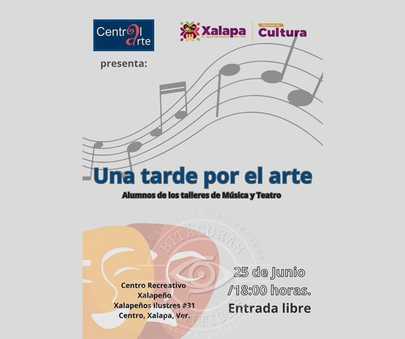 A la misma hora, en el Muxa, se tendrá la charla “El conflicto interior y cómo superarlo”. A las 18:00 horas, en el CRX, Central Arte presentará “Una tarde por el arte”, con alumnos de los talleres de música y teatro; a esta misma hora, en el Museo de la Música Veracruzana, se ofrecerá la charla-conferencia “Trans-formando, el sonido de los derechos”.