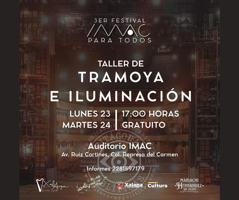 Este lunes, en el Museo Casa de Xalapa (Muxa), a las 16:00 horas, se impartirá el Taller de Arteterapia en óleo pastel de Alex Van Roe. Una hora más tarde, en el auditorio de la IMAC, iniciará el Tercer Festival “IMAC para todos”, con el taller “Tramoya e iluminación”.