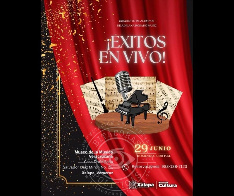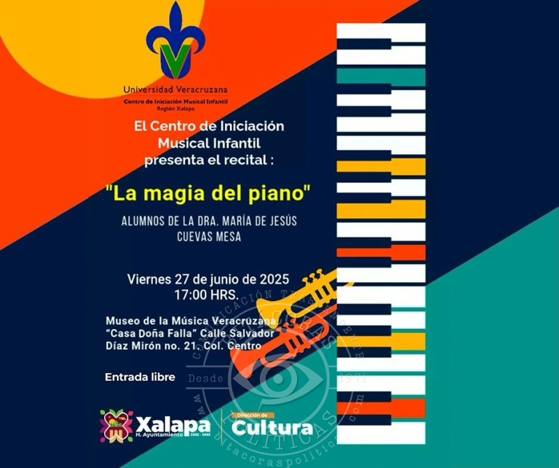 El viernes, en el Museo de la Música Veracruzana, a las 17:00 horas, se ofrecerá el concierto “La magia del piano”, con alumnos del Centro de Iniciación Musical Infantil, media hora más tarde, en el Parque Juárez, se desarrollará “Viernes en vivo itinerante”, una noche de música con Conchita Garfias, Enya Hermosillo y Ramsés Ojeda.