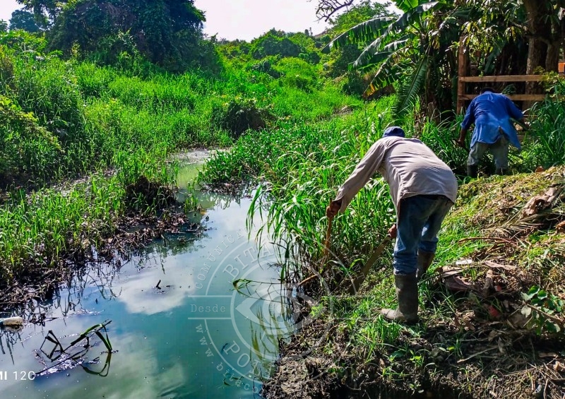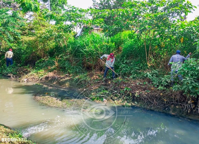 Cuadrillas de Obras Públicas del Ayuntamiento de Tuxpan llevan a cabo trabajos de limpieza y desazolve de la zanja que cruza la calle Pavón con dirección a Andrés Soler, para reducir los riesgos de inundaciones.