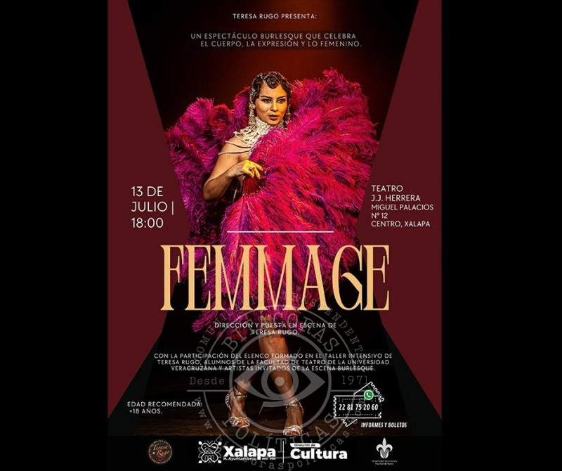 A las 18:00 horas, en el Teatro J. J. Herrera, se presentará el espectáculo burlesque “Femmage”, a cargo de Teresa Rugo.