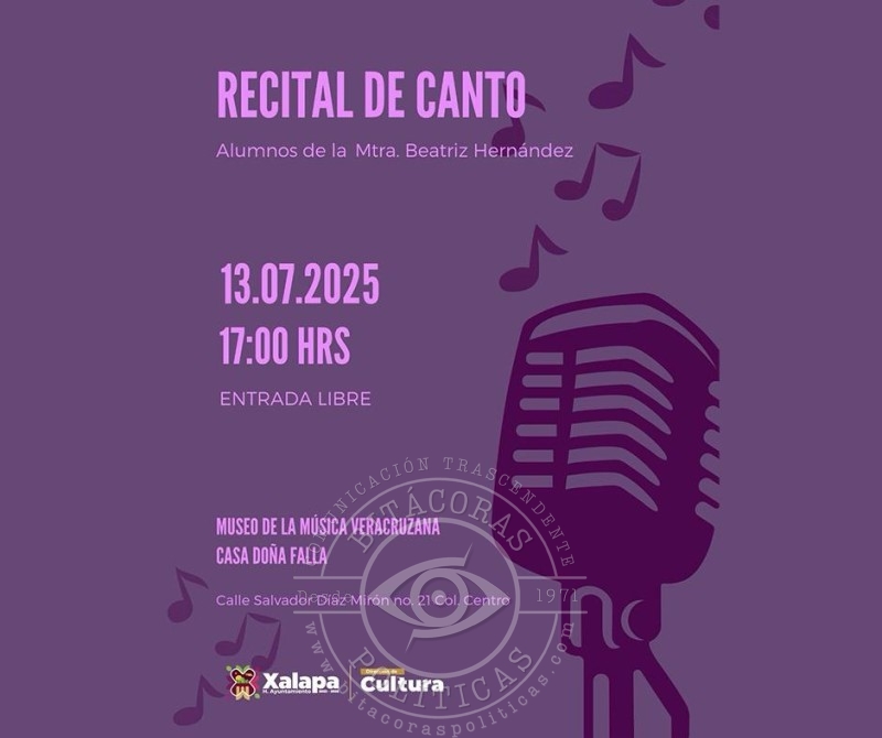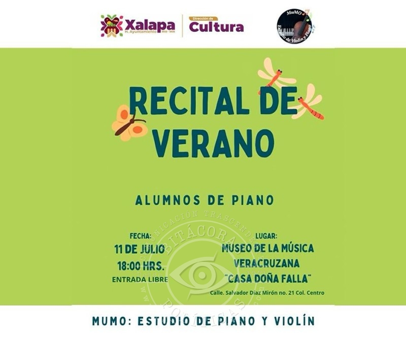 En el mismo recinto, se realizará el Recital de Verano con alumnos de Mumo: Estudio de Piano y Violín. A las 18:40 horas, en el Barrio Mágico de Xallitic, se llevará a cabo el fandango “Un legado veracruzano”.