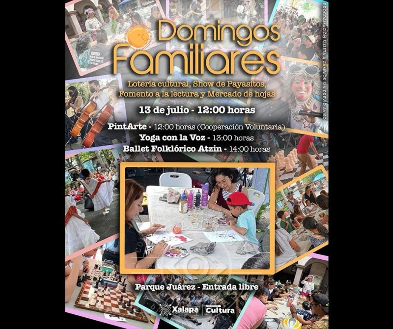 Las actividades culminan el domingo 13, desde las 10:00 horas, con Terapias Complementarias, ofrecidas por Hollística Xalapa, en el CRX. A las 12:00 horas, en el Teatro J. J. Herrera, se celebrará el Concierto de Verano de la Academia de Música JazzCat; mientras que en el Parque Juárez, se desarrollarán los “Domingos Familiares”.