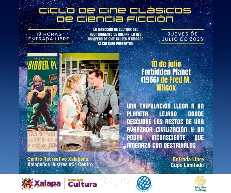En el CRX se proyectará la película “Forbidden Planet”, como parte del ciclo de cine de ciencia ficción que promueve la Red Xalapeña de Cineclubes.