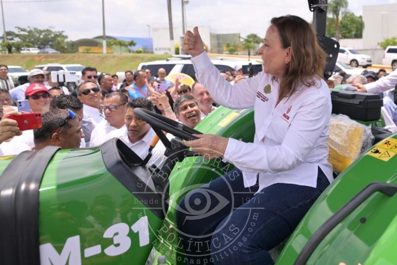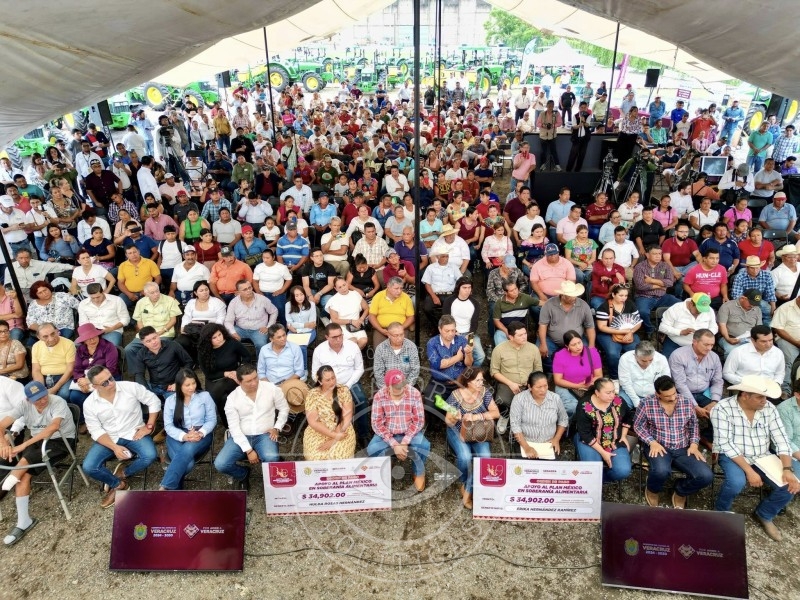 El evento se llevó a cabo este jueves en Acayucan, donde, acompañada del titular de la Secretaría de Desarrollo Agropecuario, Rural y Pesca (Sedarpa), Rodrigo Calderón Salas, la mandataria entregó 45 tractores, 8,500 bolsas de semilla de maíz blanco híbrido y 593 cheques de apoyo económico, como parte de una estrategia integral para el rescate del campo veracruzano.