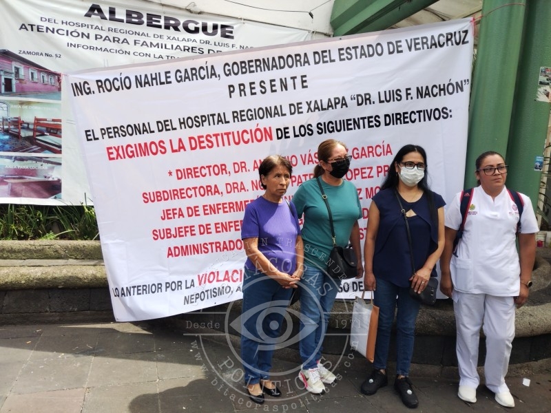 Las personas inconformes señalaron a los doctores Antonio Vázquez García y Norma Patricia López Pretelin, director y subdirectora del hospital, respectivamente, así como a Jennifer Juárez Moreno y Miguel Rojas Domínguez, jefatura de enfermería, y al administrador Octavio Bustamante, como responsables de prácticas autoritarias y actos de nepotismo. En una lona colocada frente al hospital, demandaron su salida inmediata por la “sistemática violación a los derechos humanos y laborales” del personal.
