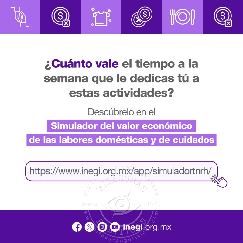 El simulador, disponible en el portal oficial del organismo (www.inegi.org.mx/app/simuladortnrh/), solicita a las y los usuarios reportar las horas semanales destinadas a labores del hogar y de cuidados, para luego estimar su valor económico anual. Según el INEGI, esta iniciativa busca “coadyuvar a la comprensión del trabajo no remunerado que se realiza en el hogar para brindar bienestar a sus integrantes”.