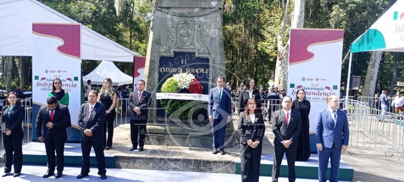 Acompañado por su equipo de trabajo, Santos Navarro montó guardia de honor ante el monumento a Miguel Hidalgo y Costilla, en el parque Los Berros de la ciudad de Xalapa, en el marco de las ceremonias cívicas de septiembre.