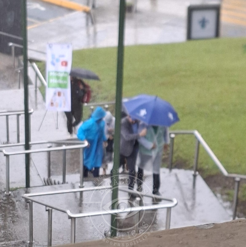 Las imágenes difundidas del evento también desataron críticas. Una de ellas mostró al rector subiendo escaleras bajo un impermeable, acompañado por colaboradores que sostenían dos paraguas para cubrirlo, escena que fue interpretada como símbolo de un estilo distante del discurso de sencillez que lo había caracterizado en el pasado.