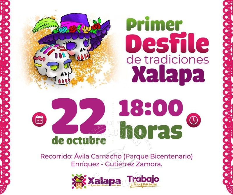 El Ayuntamiento de Xalapa anunció la realización del Primer Desfile de Tradiciones el próximo 22 de octubre, con la participación de personal administrativo y operativo de sus distintas áreas. El recorrido busca honrar y preservar las costumbres locales, en especial las relacionadas con el Día de Muertos.