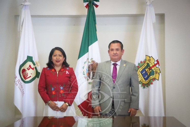 Ramón Santos Navarro, Contralor General del Estado de Veracruz, sostuvo una reunión de trabajo con la Magistrada Presidenta del Poder Judicial, Dra. Rosalba Hernández Hernández, en seguimiento a la política de honestidad y transparencia promovida por la Gobernadora Rocío Nahle. El encuentro se realizó en la sede del Poder Judicial, con el objetivo de fortalecer la rendición de cuentas, el control financiero y presupuestal, así como la coordinación para prevenir y combatir la corrupción.