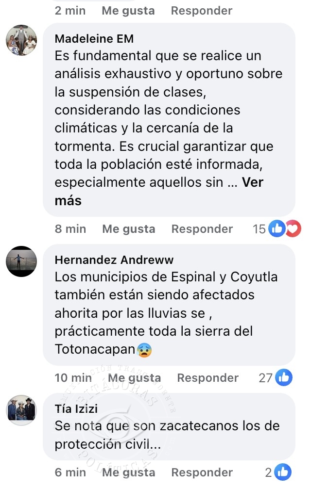 La ampliación de la suspensión en Poza Rica generó críticas entre padres de familia y ciudadanos de otros municipios, quienes expresaron su indignación por la falta de medidas preventivas similares en todo el territorio veracruzano. En redes sociales, usuarios señalaron la necesidad de considerar la seguridad de los estudiantes en todo el estado, dado que las lluvias podrían afectar también otras regiones.
