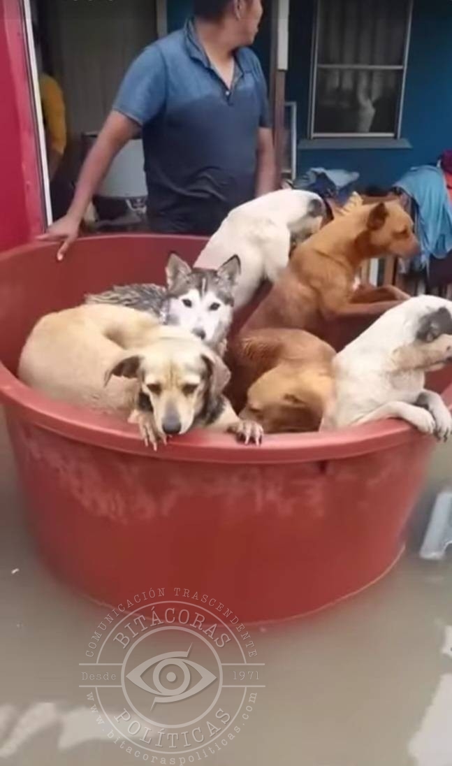 En medio de la emergencia, se ha observado que numerosas familias se niegan a abandonar sus hogares sin llevar consigo a sus mascotas, a las que consideran parte de su familia. Vecinos de las colonias Lázaro Cárdenas, Arroyo del Maíz y Petromex han improvisado balsas y lazos para rescatar perros, gatos y aves, priorizando su protección junto a la de sus hijos y personas mayores. “No los podemos dejar, ellos también son familia”, dijo a Bitácoras Políticas la señora Martha González, vecina de la calle Ignacio de la Llave, mientras esperaba el arribo de los cuerpos de rescate.