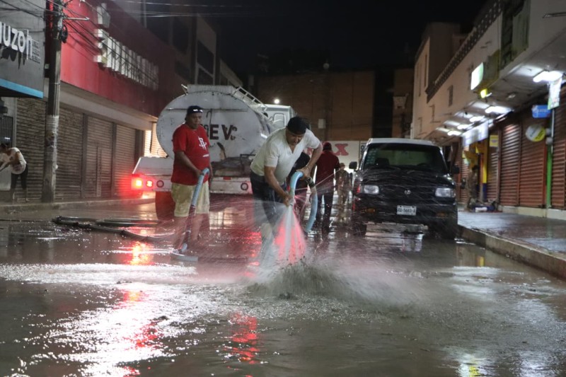 En paralelo, comerciantes, empleados y voluntarios colaboraron en la limpieza interior de locales del mercado municipal y negocios establecidos, en un esfuerzo colectivo por recuperar la actividad económica en el centro de la ciudad.