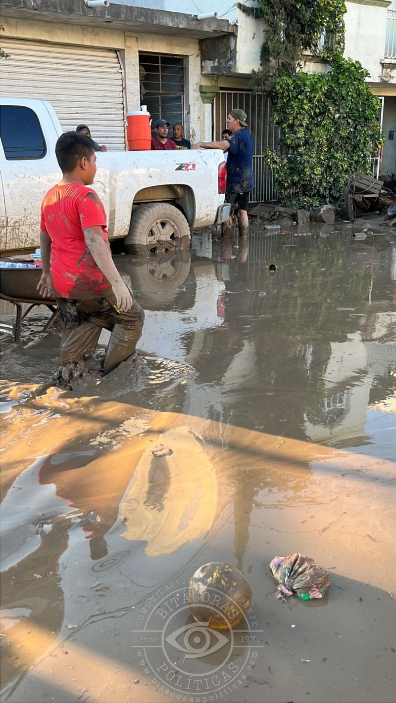 A pesar de la devastación, el ánimo solidario caracteriza la respuesta ciudadana. En los parques y explanadas se reparten víveres, mientras familias enteras colaboran para rescatar pertenencias, limpiar calles y rescatar animales. En redes sociales, el mensaje se repite con una sola voz: “Poza Rica no se rinde”.