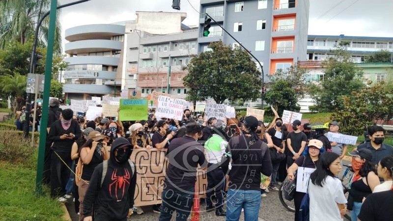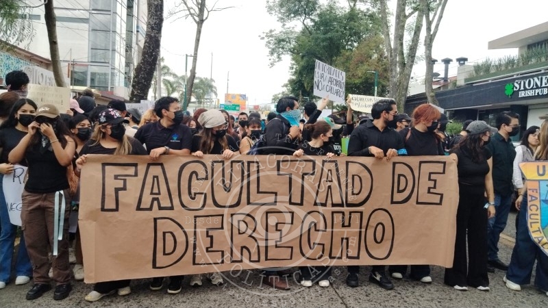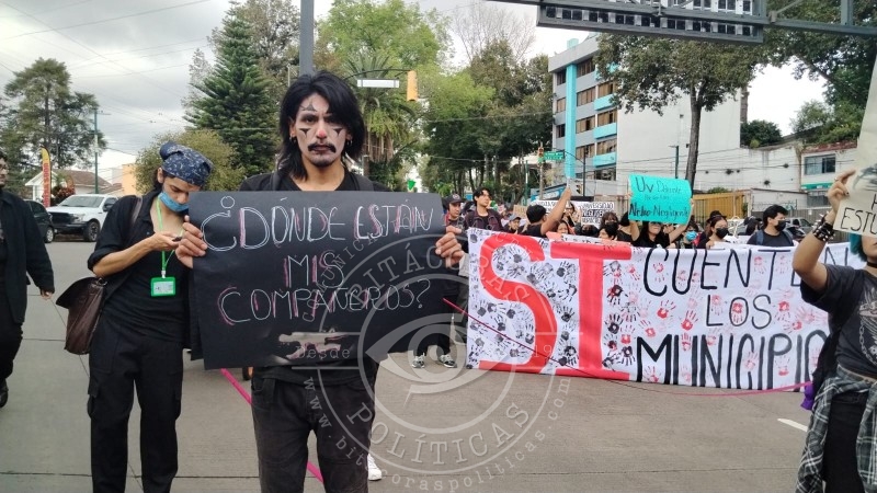 El contingente partió alrededor de las 10:00 horas desde el Teatro del Estado y avanzó por la avenida Ávila Camacho hasta llegar a la Rectoría de la UV, donde los manifestantes realizaron un pronunciamiento público. Portaban pancartas con consignas de solidaridad y demandas de verdad. Durante la concentración, también expresaron su rechazo a la prórroga del rector Martín Aguilar Sánchez, a quien calificaron de “espurio”, y exigieron que la institución emita un comunicado oficial con cifras verificadas sobre las personas desaparecidas.