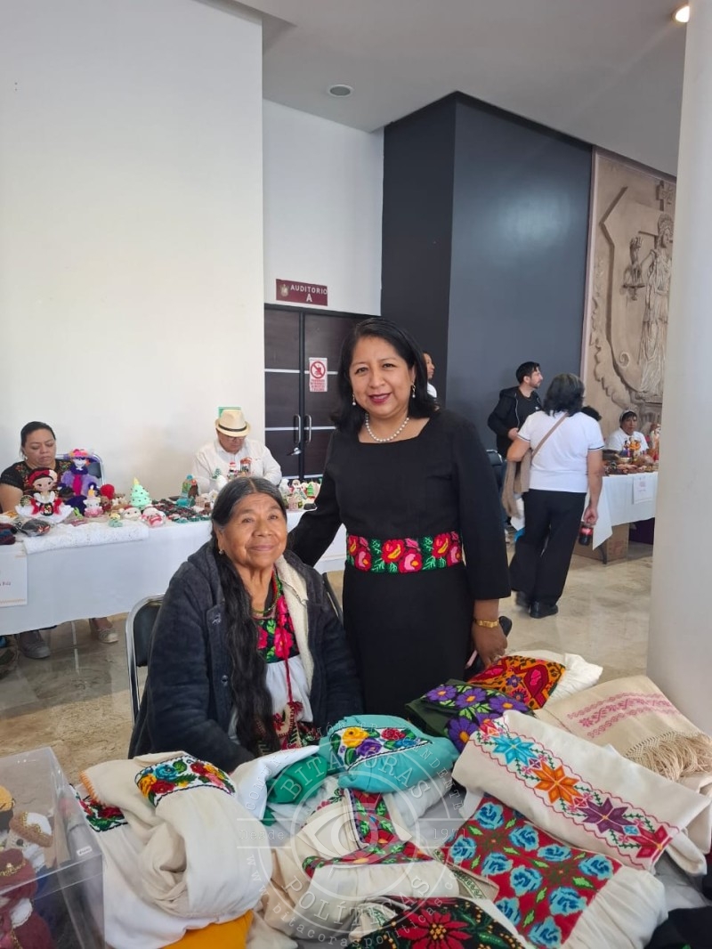 La presidenta del Tribunal Superior de Justicia agradeció el acompañamiento de la maestra Jaquelin Fabiola Lagunes Castro, representante del colectivo Con Estilo Artesanal, organización que colaboró en la coordinación con los expositores.