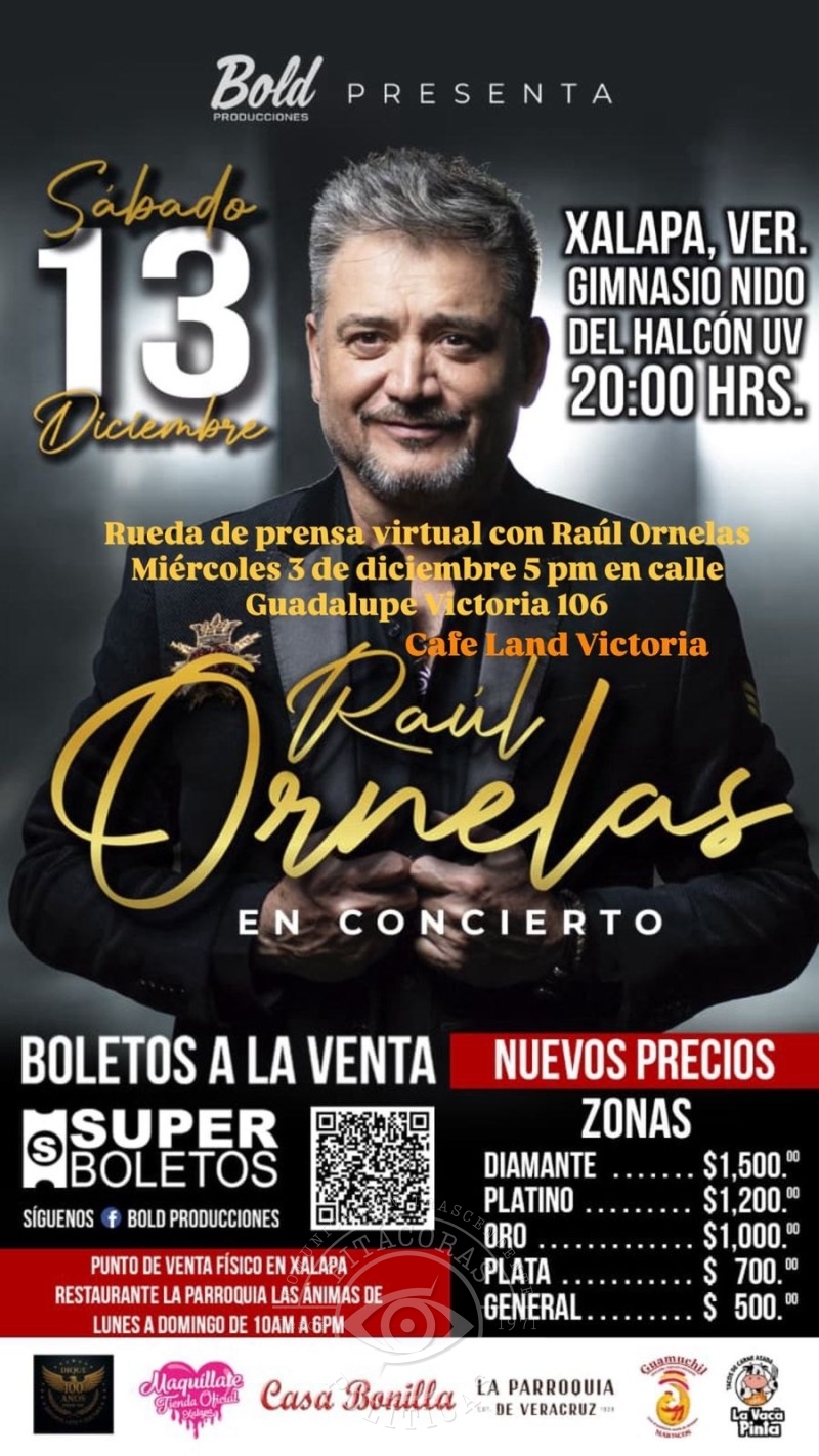 El cantautor Raúl Ornelas confirmó que ofrecerá un concierto en Xalapa el próximo 13 de diciembre a las 20:00 horas en el Nido del Halcón, donde presentará un espectáculo de dos horas dirigido a un público que, dijo, “vive el amor y el desamor con la misma intensidad”. El anuncio fue realizado durante un encuentro virtual con medios de comunicación, en el que el artista adelantó que será una presentación “inolvidable y cargada de emociones”.