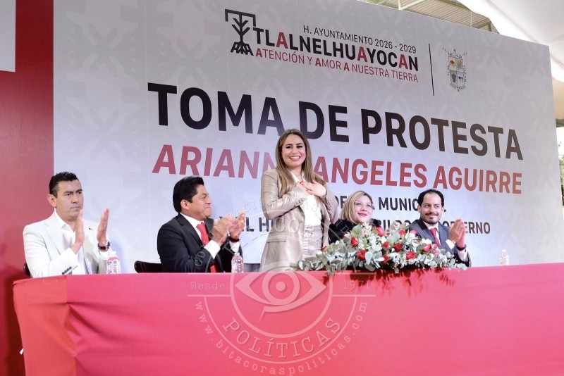 Arianna Ángeles Aguirre rindió protesta de ley como presidenta municipal constitucional de Tlalnelhuayocan, con lo que dio inicio formal a la administración municipal para el periodo 2026–2029. El acto solemne se desarrolló con la presencia de integrantes del cabildo, servidores públicos, representantes partidistas y ciudadanía.
