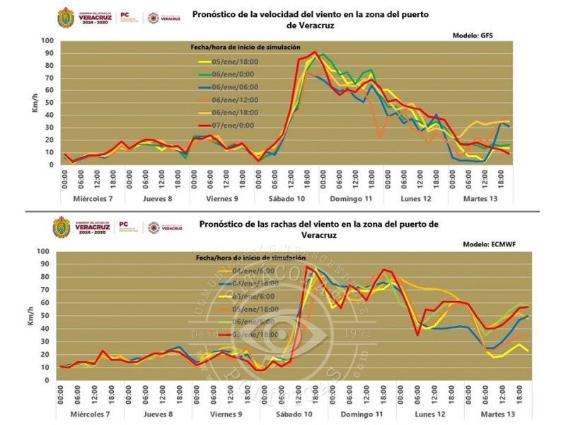 De acuerdo con el pronóstico oficial, se espera un evento de Norte de rápida intensificación, con rachas máximas de 95 a 110 kilómetros por hora en las costas central y sur, y de 85 a 100 kilómetros por hora en la costa norte. En la región comprendida entre Xalapa, Naolinco, Misantla y el valle de Perote, los vientos podrían alcanzar de 45 a 65 kilómetros por hora, además de un marcado descenso de la temperatura.