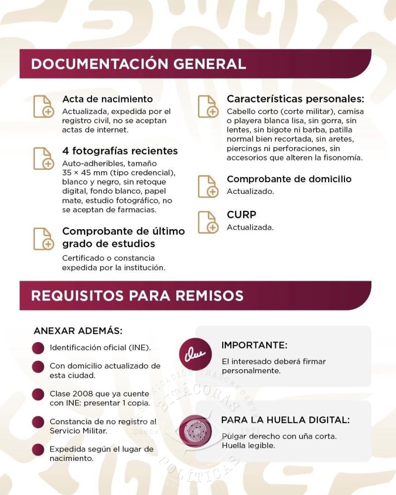 De acuerdo con la autoridad municipal, los formatos oficiales emitidos por la Secretaría de la Defensa Nacional estarán disponibles únicamente hasta el 15 de octubre de 2026, por lo que se recomienda realizar el trámite con anticipación para evitar contratiempos.