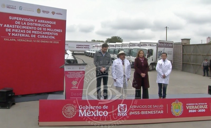 El Gobierno del Estado inició este lunes la distribución y abastecimiento de 10 millones de piezas de medicamentos y material de curación en todo el territorio veracruzano, durante un acto de supervisión encabezado por la gobernadora Rocío Nahle García y el el secretario de Salud de Veracruz, Valentín Herrera Alarcón, con el objetivo de asegurar el acceso oportuno a tratamientos en hospitales y centros de salud, especialmente en regiones de difícil acceso.